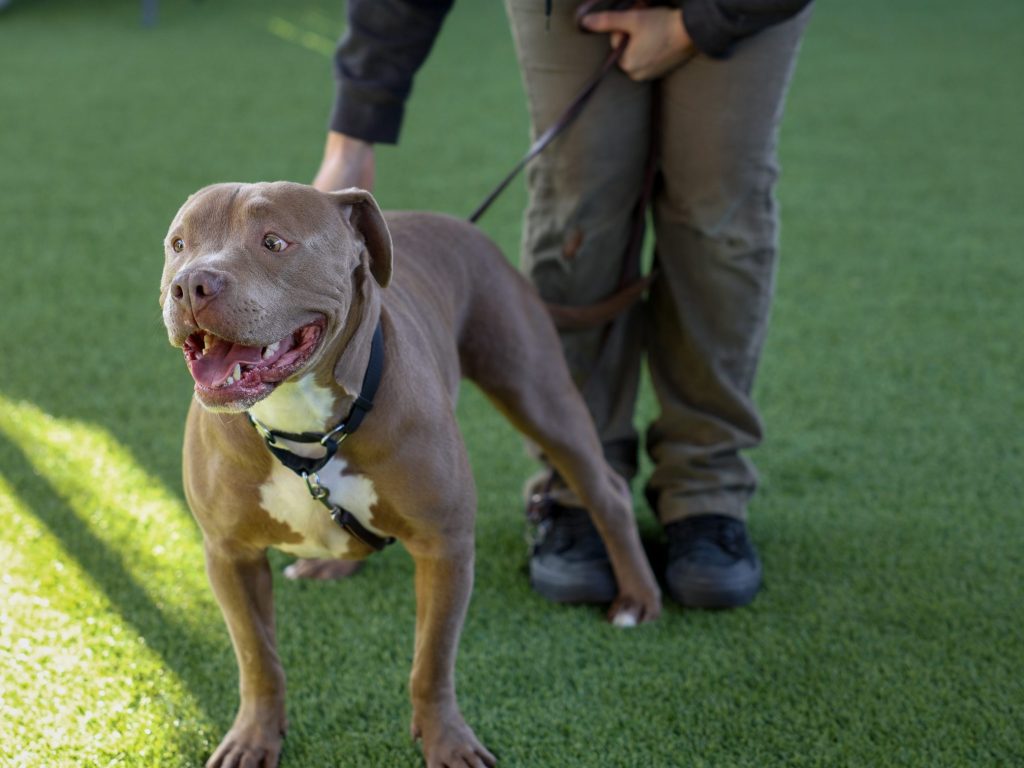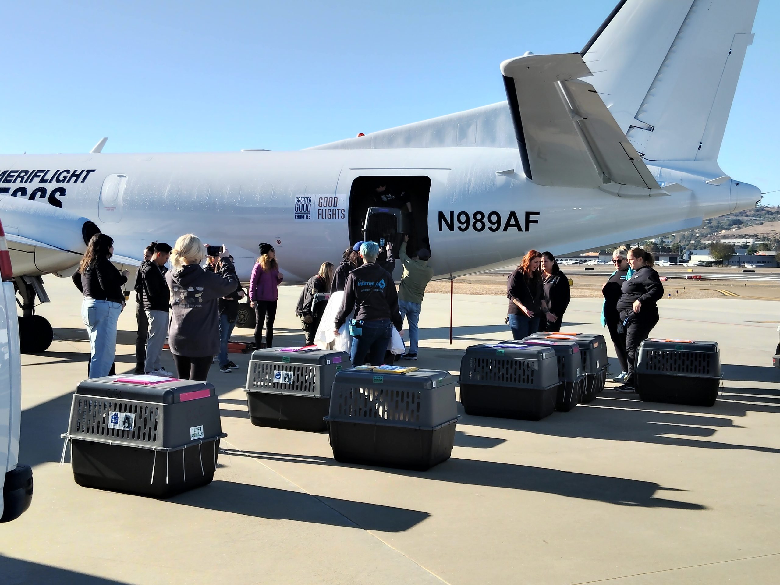 Rescue dog at San Diego Humane Society; SDHS and other volunteers prepare shelter pets for rescue flight